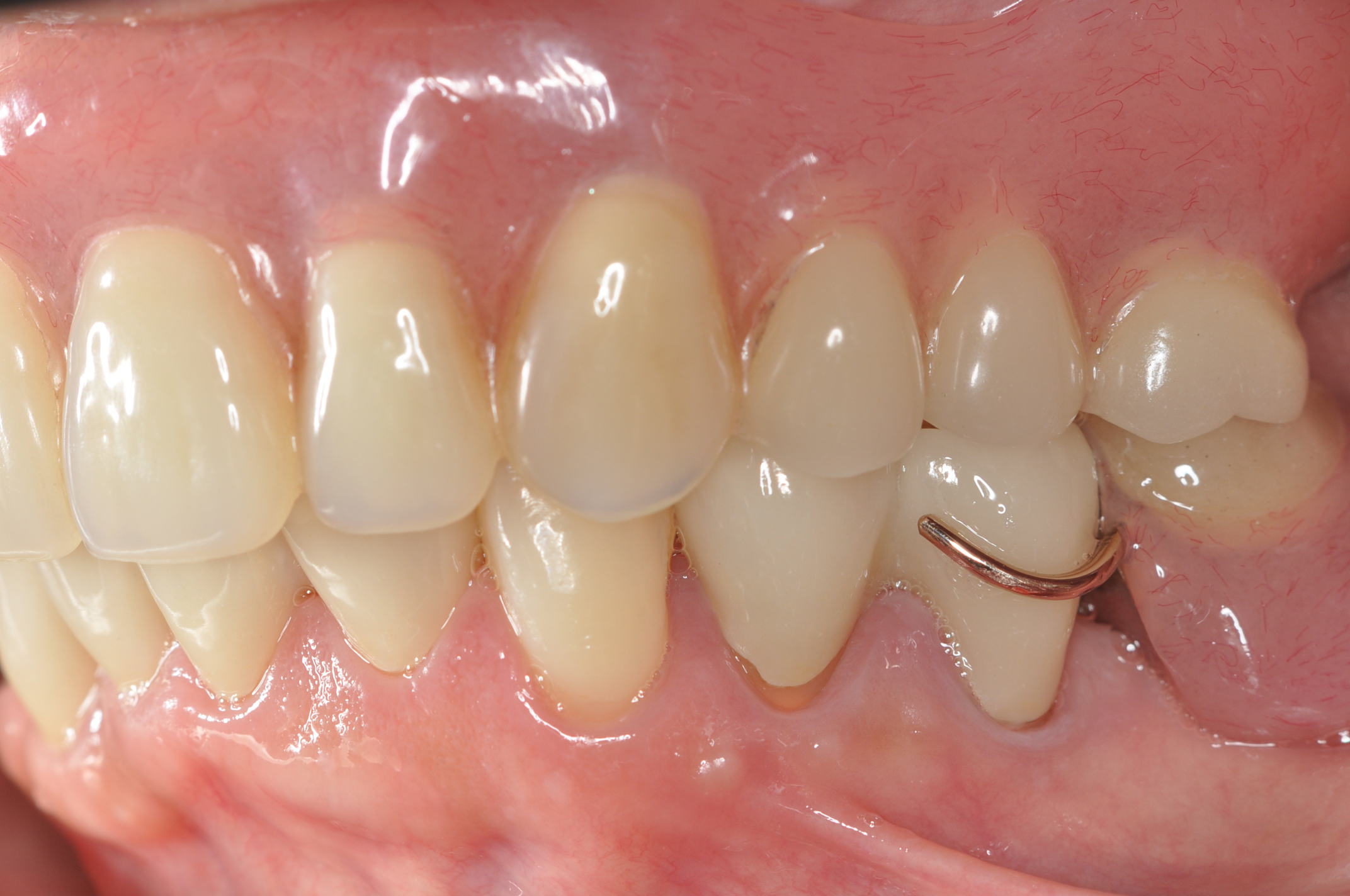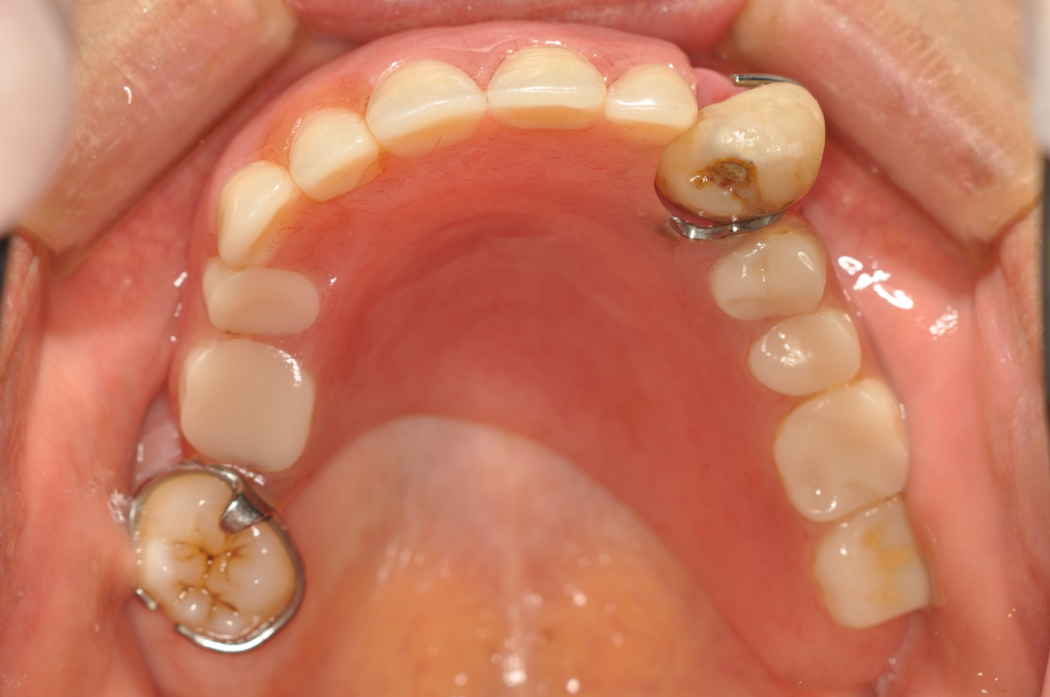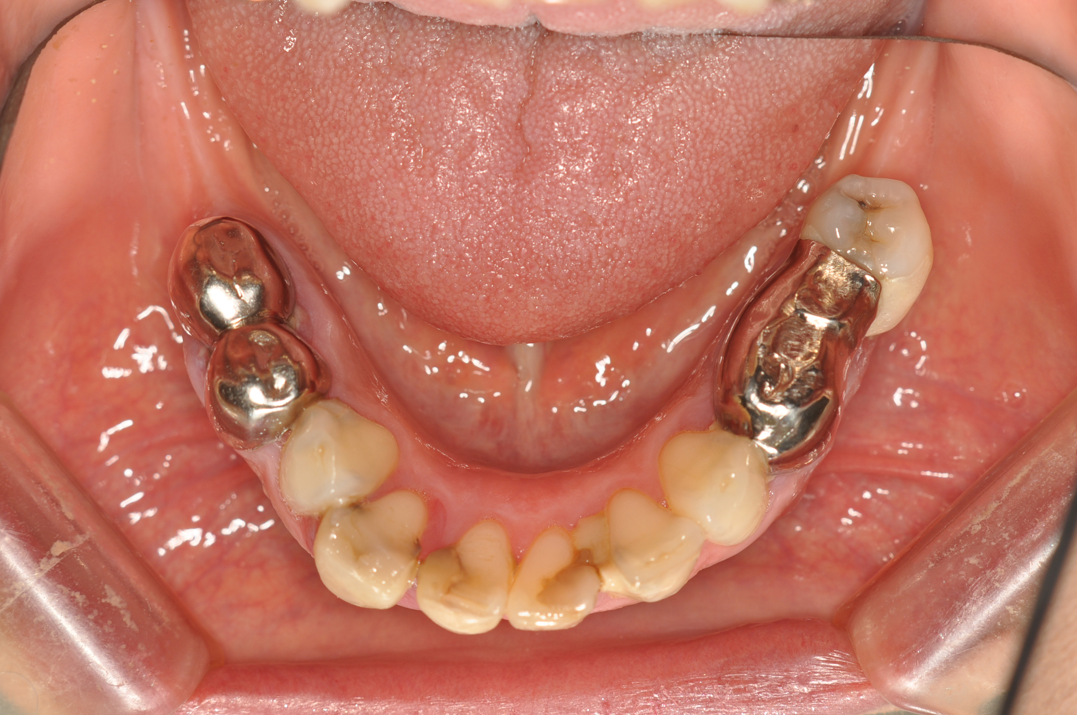 試適咬合調整時。安藤歯科医院では臼歯部人工歯については95%陶歯を使います。なぜならその後の義歯のメインテナンス、修理がしやすいためです。