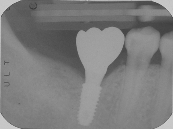 1本の歯を抜けたままに放っておくと、口全体に様々な障害がおこってきます。その一つに歯がの伸びる→挺出(ていしゅつ)があります。その事により前方の歯との間に食物が詰まりやすくなったり、横に動かす時に干渉したり、顎関節に問題を起こすことは珍しい事ではありません。しかしその伸びた歯に合わせて対合歯を作成すると背の低い歯になってしまいそれもまた問題を引き起こします。かと言って伸びた歯を削りすぎるとしみるなどの問題も発生しますね。この症例は部分矯正を行い、最小限のインプラント治療を行いました。