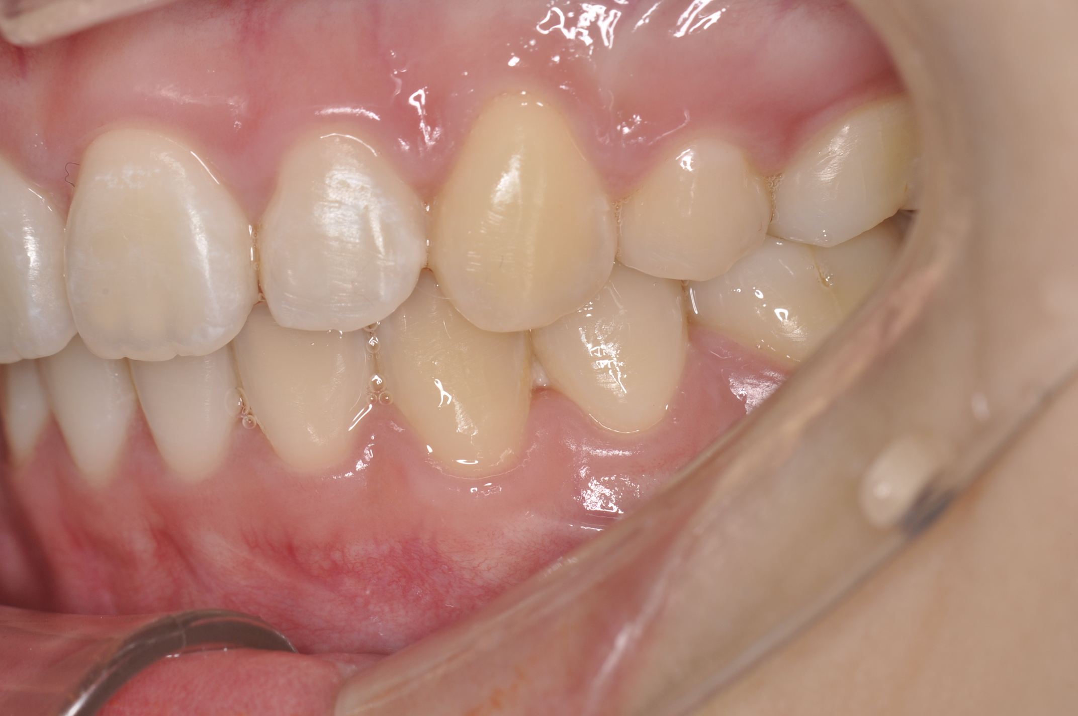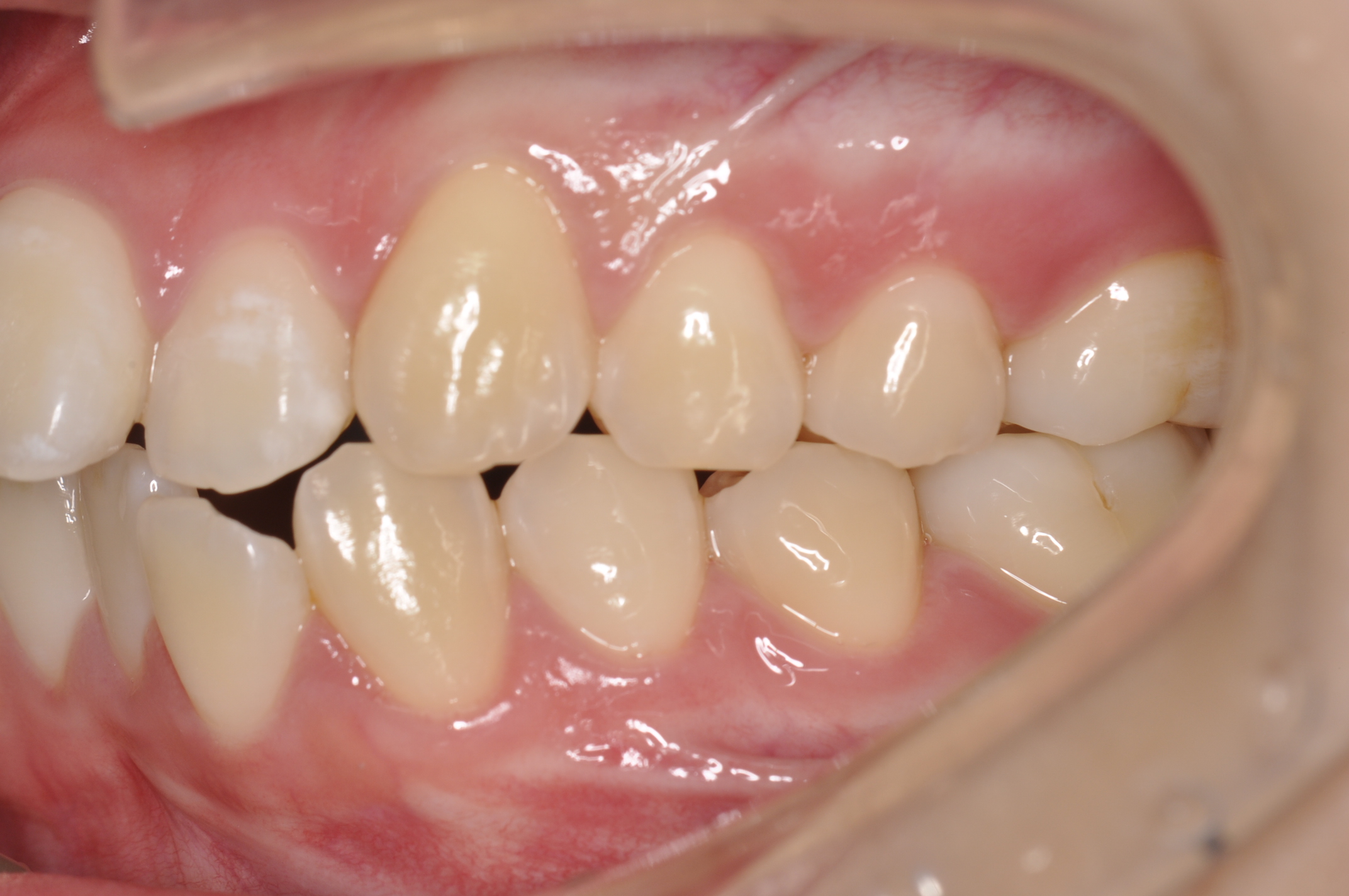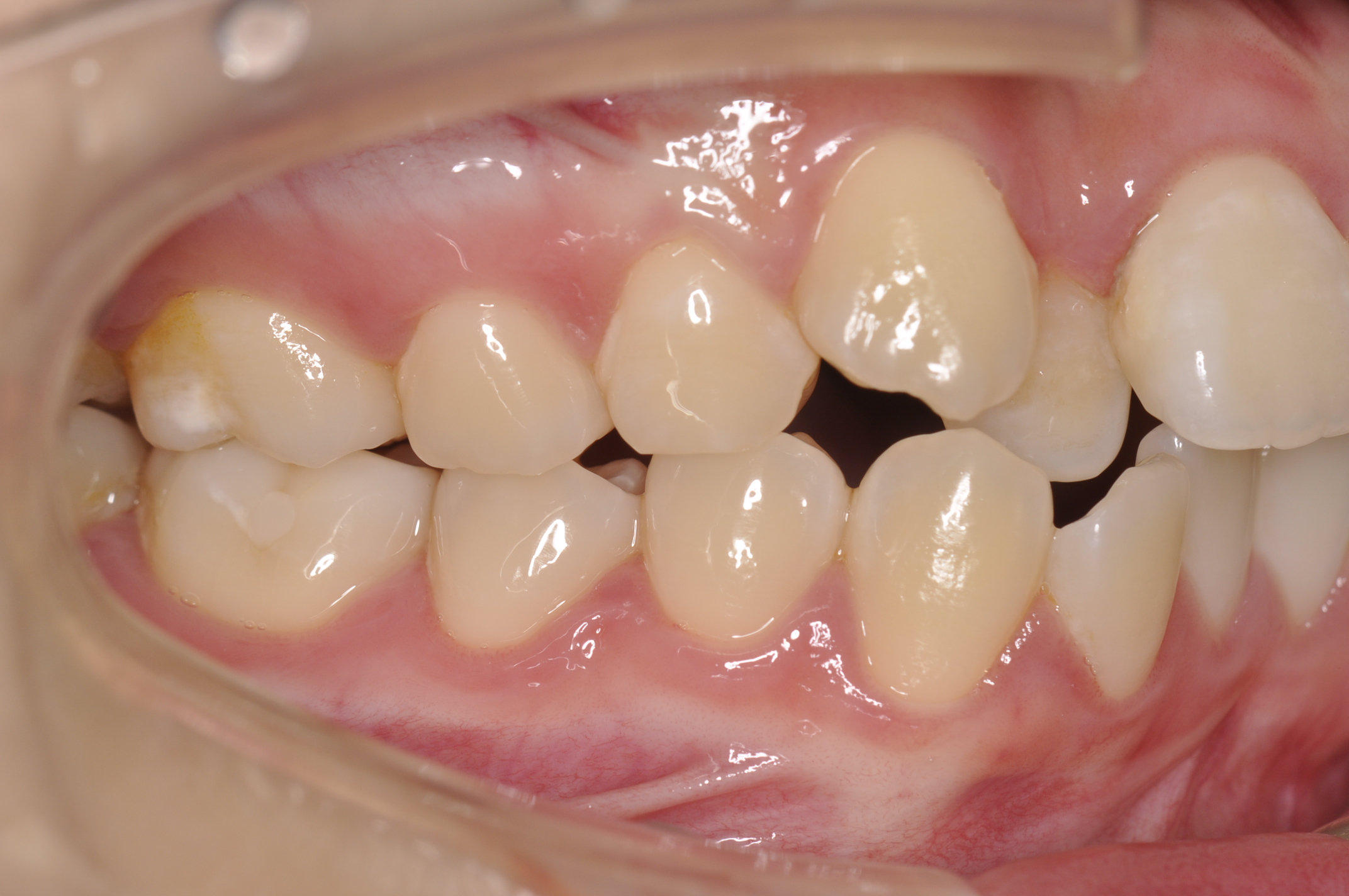 骨格性Ⅰ級 臼歯部右側アングルⅡ級左側アングルⅠ級 上下顎前歯部叢生 |