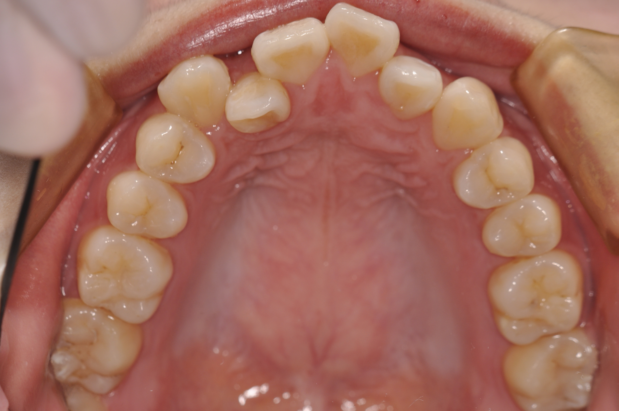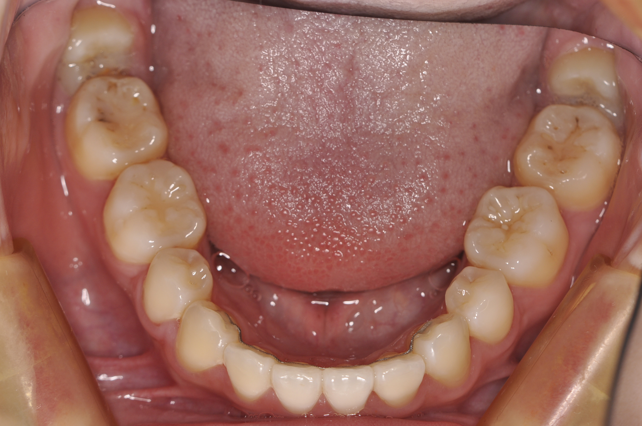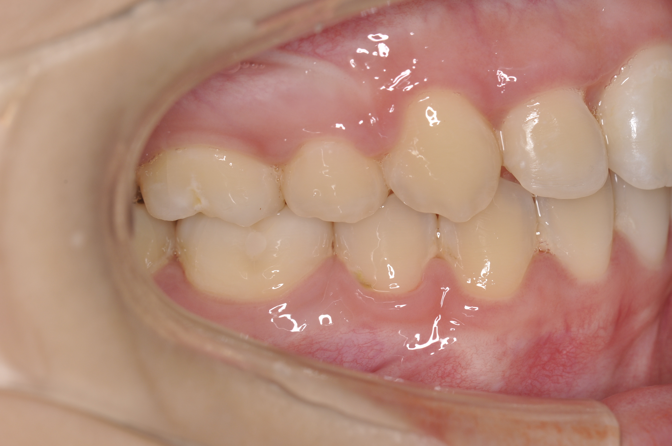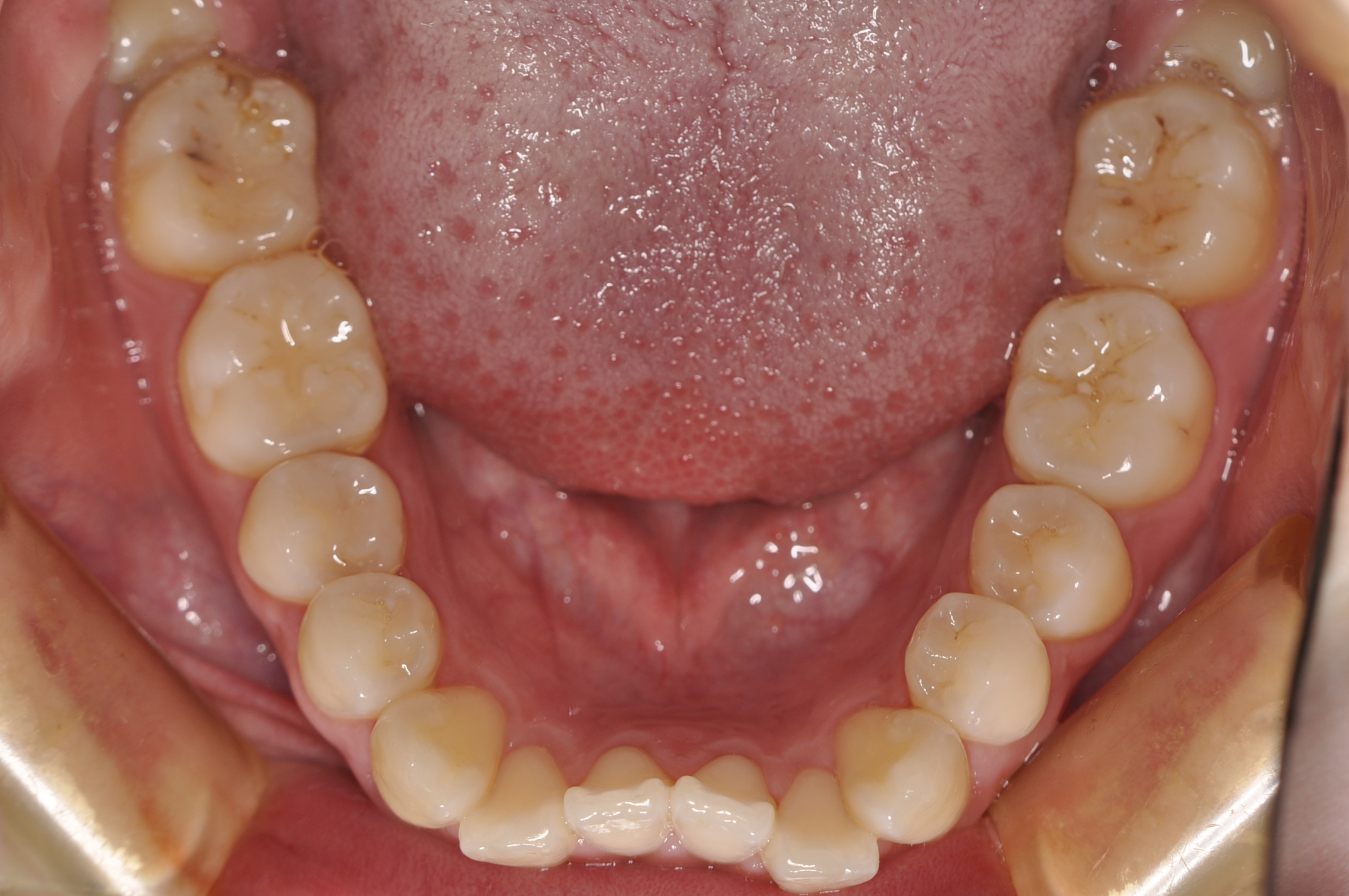 骨格性Ⅰ級 臼歯部右側アングルⅡ級左側アングルⅠ級 上下顎前歯部叢生 |